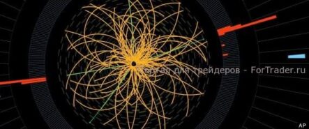 This 2011 image provide by CERN, shows a real CMS proton-proton collision in which 4 high energy electrons (green lines and red towers) are observed in a 2011 event. The event shows characteristics expected from the decay of a Higgs boson but is also consistent with background Standard Model physics processes. To cheers and standing ovations, scientists at the world’s biggest atom smasher claimed the discovery of a new subatomic particle Wednesday July 4, 2012, calling it «consistent» with the long-sought Higgs boson popularly known as the «God particle» that helps explain what gives all matter in the universe size and shape. (AP Photo/CERN) EDITORIAL USE ONLY — MANDATORY CREDIT
